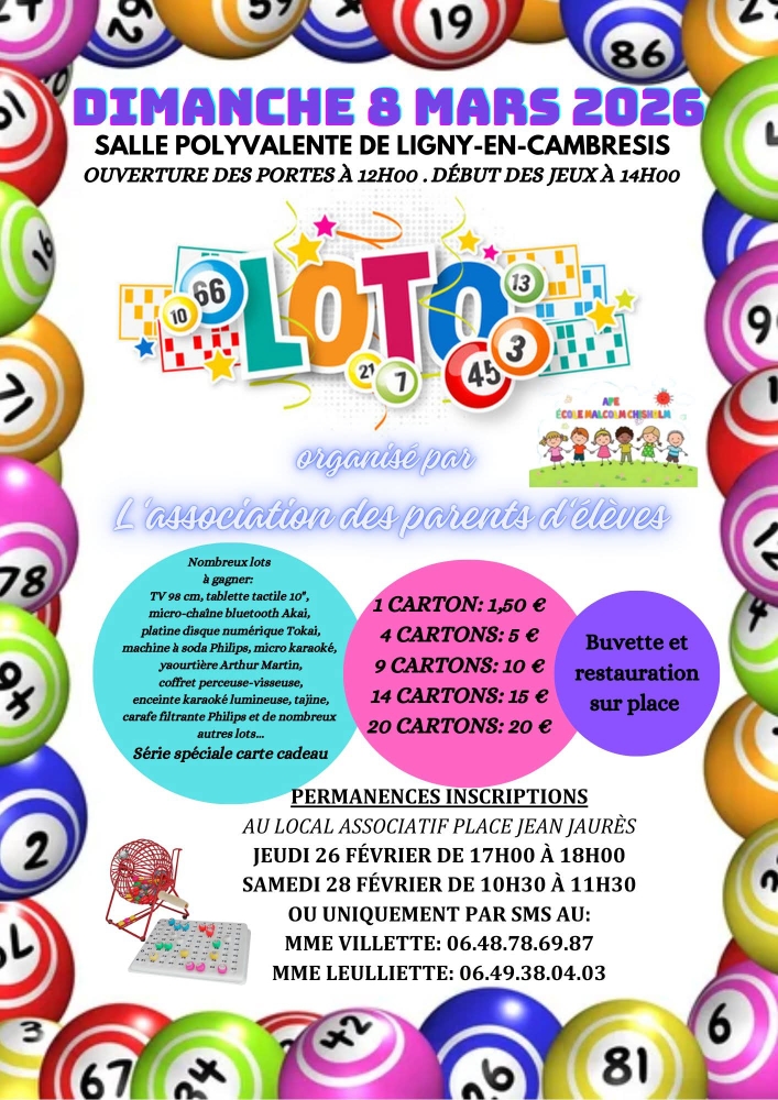 Loto organisé par l’Association des Parents d’Elèves le dimanche 8 mars à la Salle Polyvalente