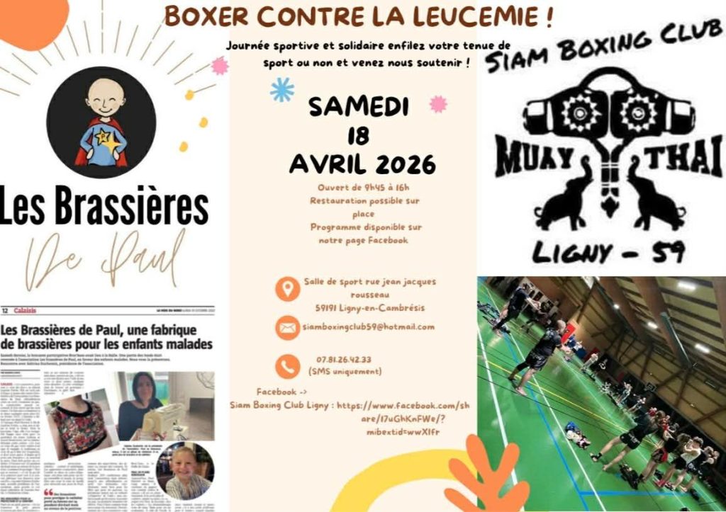 BOXER CONTRE LA LEUCÉMIE UN ÉVÉNEMENT SOLIDAIREOrganisé par Siam Boxing Club LignyEn compagnie de l’association Les Brassières…
