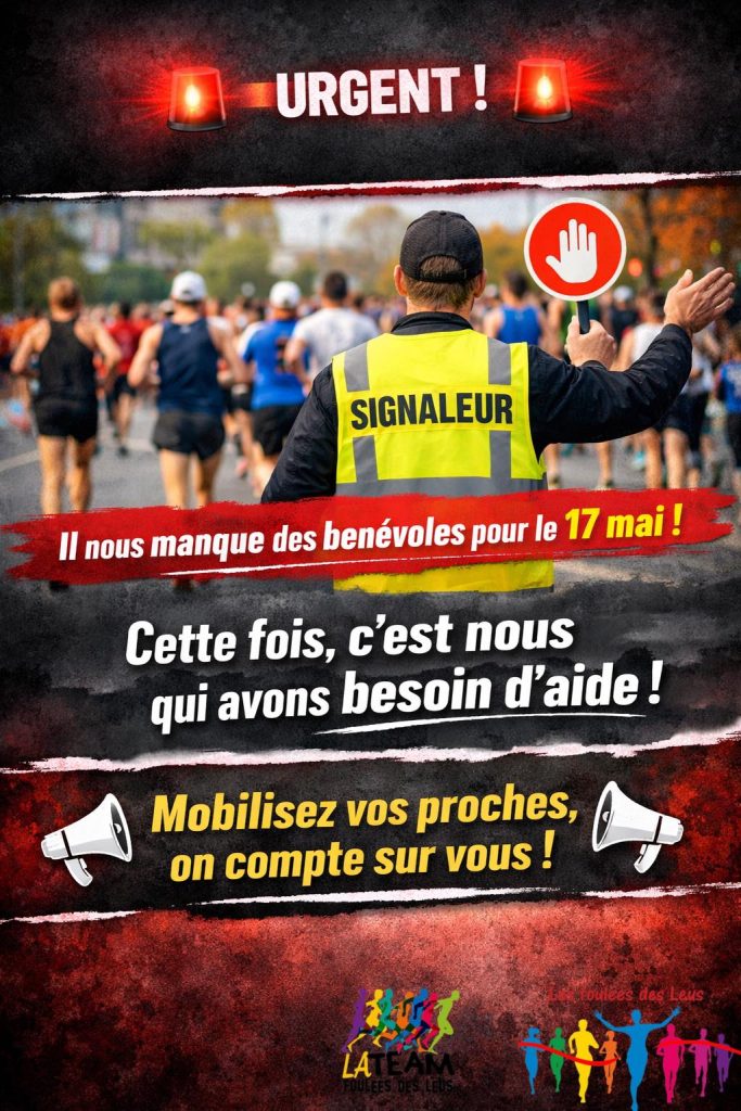 URGENT – NOUS AVONS BESOIN DE VOUS !À l’approche de notre course du 17 mai, l’organisation rencontre…
