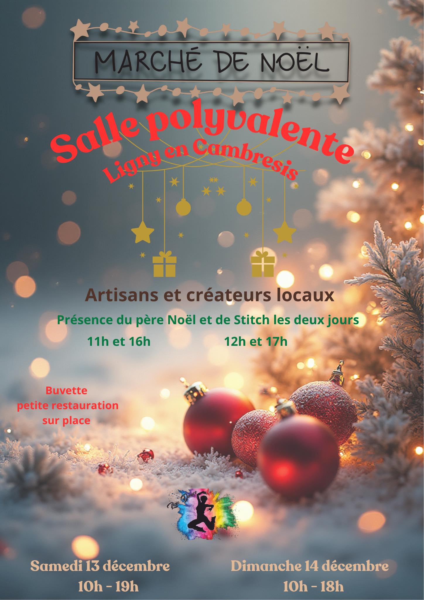 Marché de Noël à la salle polyvalente Pierre-Alain TAISNE organisé par Lign’Dance, le samedi 13 décembre de 10h à 19h et le dimanche 14 décembre de 10h à 18h